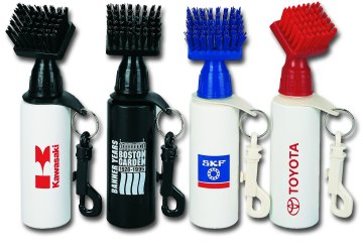 The EZ Brush is an innovative new golf brush that features a compact, ergonomically designed brush with brass bristles & retractable nylon cord that extends up to 30 inches. Imprintable area is 1" in diameter and in the minimum quantity of 100 they are less than $ 9 each.