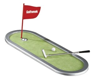 This aluminium alloy desktop golf game measures 3 1/2" X 9" X 1/4" and provides an imprintable area of 1/2" X 1" on the flag. Each game includes a miniature putter, golf ball, and felt putting green with a flag stick. Less than $ 13.00 each in the minimum quantity of 48.