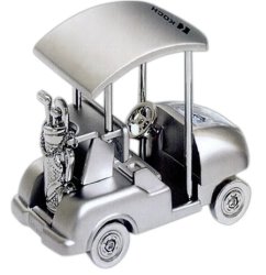 The miniature Silver golf cart is 1 1/2" X 2 1/4" and provides an imprint area of 1" X 3/4". It has mini golf bag and clubs in the back of the cart. Less than $ 22.50 in the minimum imprintable quantity of 50.