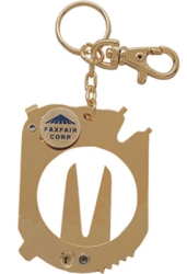 Pictured below is the ten in one golf tool. It is a combination divot repair tool, scraper, spike wrench, groove cleaner, ball marker, face line cleaner, ball checker, screw driver, knife blade and keychain. It measures 2 1/4" X 2 3/4" and provides an imprint area of 1/2" X 1/2". Less than $ 3.85 each in the minimum imprintable quantity of 50.