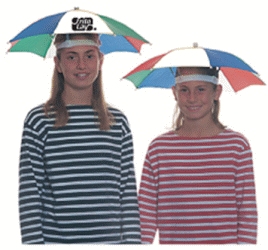The golf umbrella hat is a big hit at junior toutrnaments as well as adult golf outings. It keeps both the sun and rain off! It measures 24" arc and provides an imprint area of 3 1/2" X 3 1/2". Available only in the alternating pattern of blue, white, red and green. Less than $ 4.70 each in the minimum imprintable quantity of 75.