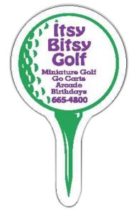 The Golf/Ball Tee Magnet on the left measures 1 3/4" X 3" and in the minimum of 250 is less than $ 1.25 each. The Golf Cart Magnet is 2 1/2" X 3" and in the 250 minimum is less than $ 1.50 each.