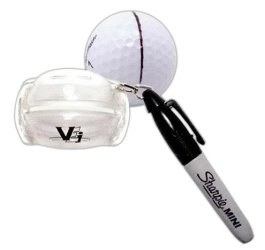 The Line 'Em Up Ball Liner helps align your golf ball so that you can concentrate on your stroke and speed. It fits any regulation size golf ball and conforms to USGA rules. It comes with a matching attached mini black Sharpie. Available in red, green, blue and clear. Imprint area is 3/4" X 1/2" and is less than $ 8.50 each in the minimum of 50,