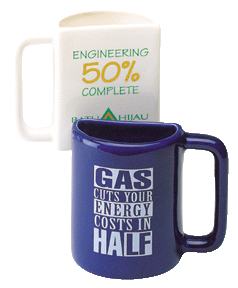 Presented below are several versions of the half mug that is great for that half a cup of coffee or other favorite beverage. These mugs are great promotional items that will be a one of a kind mug for the needs of your business or organization.