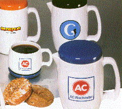 Here is a great combintaion for the home. The 32 oz. Carafe is great for either cold or hot drinks and is available in white only. The lids are available in Ebony Black, Tiffany Blue, Fire House Red, Dark Blue, Steel Gray, Maroon, Orange, Purple, Forest Green.and Teal. The Carafes are each 7 3/8" tall and provide you with an imprint area of 2 11/16" X 2 11/16". The 10 oz. mugs and coasters are available in colors of: Snow White, Ebony Black, Tiffany Blue, Fire House Red, Dark Blue, Steel Gray, Country Blue, Maroon, Orange, Purple, Forest Green and Teal. The minimum imprintable quantity on the carafes is 48 and the minimum on the mugs and coasters is 144.