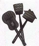 We have many variations of fly swatters in different colors. Pictured below are three of the more popular models. From left to right we have the guitar, standard flyswatter and the house shape flyswatter. The minimum imprintable quantity on these is 250.
