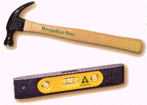 The Nail Hammer is made with a high carbon steel head - fully heat treated and polished bell face. Hickory handle. 7 oz. with a curved claw. The imprintable area is 3" wide X 3/8" high. Minimum imprintable quantity is 25. The Torpedo level is made with a tough fiberglass reinforced plastic frame, tinted with a 360 degree replaceable vials for easy reading. Reads plumb, 45 degrees and level with top reading feature. The imprintable area is 9/16" X wide X 1" high. Minimum imprintable quantity is 15.