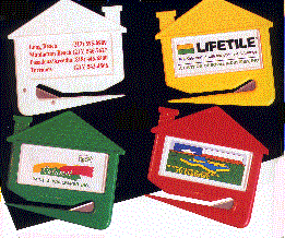 These house shape quick slit letter openers measure 2 7/8" X 3 1/16" and provide an imprint area of 13/16" X 2 1/16" on the front side and on the back side you can imprint in an area of 3/4" X 2". The House Letter Opener is available in colors of Red, White, Blue, Green and Yellow.