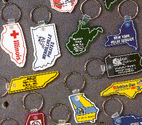 All 50 states are available in a variety of colors that include translucent red, blue and green. Alos avaialable in opaque are white, black, yellow, cream and gray. Neon colors of orange, pink abd green are also available. These key tags are made of the soft pliable vinyl and the minimum imprintable qiantity is 250. They can be imprinted on both the front and back of the state shap