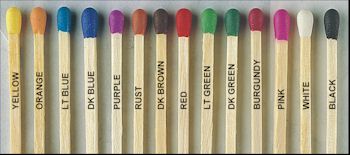 Here are the available choices for the colors of the tips of the matches that are in the various match boxes.