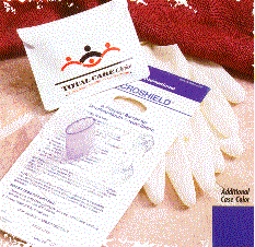 A CPR Microshield and latex gloves neatly packed into a vinyl travel case, ready for any emergency. These one-time-use items provide a physical barrier disease transmission during rescue situations. Large imprint area guarantees visibility of your ad message. An excellent promotional item for CPR/First Responder/Ambulance certification classes. Minimum imprintable quantity is 25.