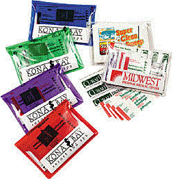 This personal first aid kit has a zippered nylon case that holds Bayer aspirin, bandages, antiseptic towelettes and a first aid guide. This is an ideal item for mailing and conventions. It measures 4 7/8" X 3 1/2" and the minimum imprintable quantity is 150.