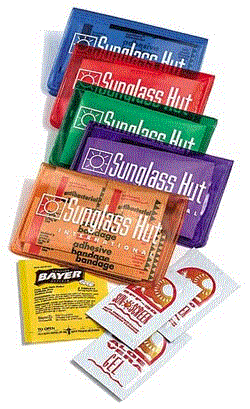 The Sunburst Care Kit is the practical kit that contains sun protection to bandage. Each 4"X 2 1/2" kit contains two bandages, two antiseptic towelettes, two SPF-30 sun protection packets, aloe packet and Bayer aspirin packet.. Minimum imprintable quantity is 150.