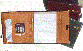 This folder with a calculator is padded to give it a rich plush feel. It includes metal corners, a velcro closure and is stiched for reinforcement and a deluxe appearance. The pocket on the left is an expansion pocket and includes a calculator and a business card pocket. It measures 12" X 11" when closed. Minimum imprintable quantity is 25.