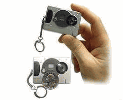 Less than a third the size of a credit card this amazing Keychain Digital Camera takes either Twenty - 352 X 288 pictures or Eighty - 187 X 144 pictures and can also do a 10 second video. It measures 2" X 1 1/2" and comes complete with USB connector cable and photo editing software. The back of the camera can have your imprint in the 3/4" area. Minimum imprintable order is only 25.
