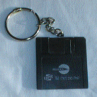 The Computer-Diskette key chain is 1 5/8" X 1 5/8" and provides an imprint are on the front of the diskette of 1 1/4" X 3/8" and on the back the imprint area is 1 3/8" X 1/4". Minimum imprintable quantity is 300.