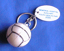 Both the Volleyball and Soccer key chains are 1 3/8" X 1 3/8" and provide an imprintable White disc for your imprint. Also available in Football. Tennis and Basketball key chains. Minimum imprintable quantity is 300.