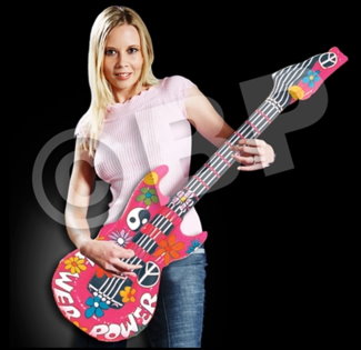 Our 42" inflatable Guitar is a stock item and is less than $ 1.50 each in the 288 quantity. We have other styles and color combination that are also available.