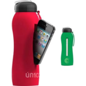 Revolutionary new hydra bottle turns your Iphone into a mini boombox. Play your music and store your phone in your 20 oz. bottle. Give your music an extra "oomph" with Beat Bottle. Ideal for travel, gym, beach, car or work. Designed to fit iPhone 4 and 5. Silicone secures and protects your phone. 100% BPA and Phthalates free. Patent pending. Perfect gift for the person who has everything! Music on the go! Gift box included. Custom imprint area of 1 3/4" X 3". Less than $ 14.00 each in the minimum of 75.