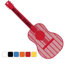 Rock your competition with our guitar-shaped swatter. Measuring 13 9/16" x 5/16" x 5 1/8", this handy tool is sure to keep the pests at bay. Customize with your choice of color, as well as your hot stamp imprint along the handle and hand out to clients and employees and let them know that you are there to lend them a hand when in need. Useful for the house or during outdoor events such as picnics and camping trips. Made in USA. Custom imprint area is 4 3/4" X 3/8". Less than $ 1.60 each in the minimum of 250. Available in White, Black, Blue, Orange, Red and Yellow.