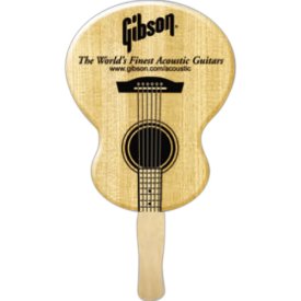 Let's rock out to the tune of another successful marketing campaign! Our stock 8" X 8" guitar shaped hand fan is made from 16-point coated board stock and is perfect for music stores, concert venues and outdoor events. Also features a basswood handle attached with adhesive on the back. Customize with an offset lithography imprint - no charge for exact PMS color matching. A simple and easy way to show your support while waving in future clients. Less than $ .55 each in minimum of 250.