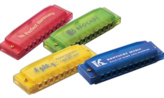 A must have for any music fan or musician. Each harmonica plays a diatonic octave in the key of "C" and comes packaged in a clear vinyl sleeve. Less than $ 2.70 each in the minimum of 75.