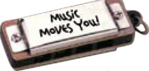 The picture on the right is the 1 5/8" X 1/2" Mini harmonica with full scale sound! This petite harmonica is a genuine musical instrument - brass reeds with nickel plated covers, four holes, eight notes (one full octave) and comes packaged in a red box. The Mini is also available as keychain, necklace or zipper pull packaged in a clear vinyl sleeve. The custom imprint area is 7/8" X 1/4". In the minimum imprintable quantity of 75 they are less than $ 2.70 each.