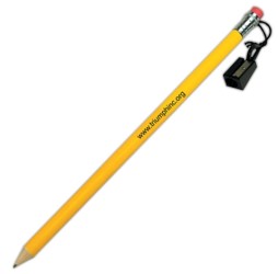 The 15" Fiant Pencil with attached sharpener is available in Yellow only and provides an imprint area of 2" wide X 1/4" high. Minimum imprintable quantity is150