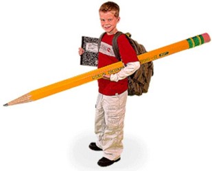 Here are some giant 14" long pencils that provide a full 9 /16" X 6" imprint area. These pencils are available in colors of black, white, kelly green, teal, light blue, metallic blue, metalic red, metallic purple, neon pink, standard yellow, metallic silver, neon orange and metallic gold. Minimum imprintable quantity is 250.