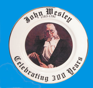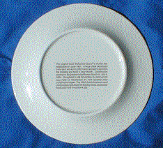 Here we have a plate that was done for the 200th anniversary of a church. The front of the plate has the picture of the church while the backside has the church history.