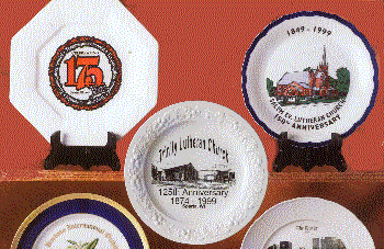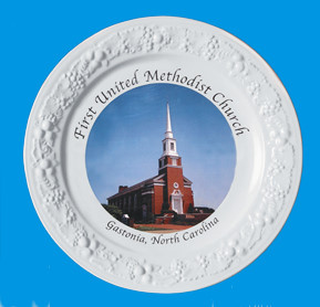 We can do a commemorative souvenir plate in either ceramic or porcelain. They can be done as a one color imprint or a four color process in either a kiln fired plate or a decal applied application.. Plus we can put your imprint on the back of the plate describing the history of your church, event or building, etc. that will enhance the perceived value of the customized plate for your church, organization, historical site or business. For our free 56 page printed commemorative plate (has mugs too) catalog give us a call at 800 960-9080 or 206 285-5359 (Seattle) or email us at donace@promotionalproductsandideas.com or don_shepherdson8@msn.com