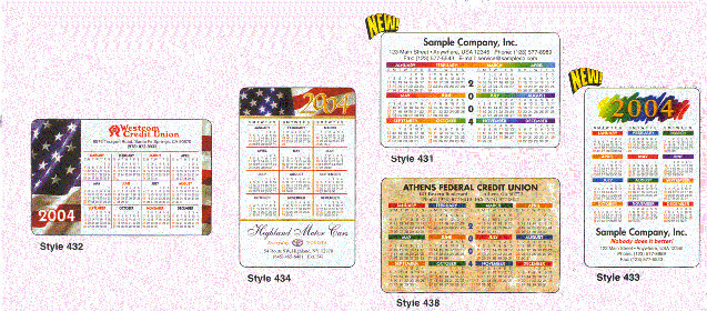 Our Calendar Cards that measure 2 1/4" X 31/2" We have many stock calendars for the front side with several religious themes available for the back side or the back side can have the Church information and order of service. Minimum quantity is 1000. We have a 32 page catalog with stock designs and lots of ideas for your Church. Please call us or email us and we will be glad to send the catalog to you.