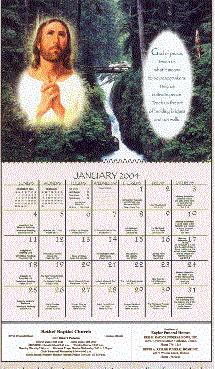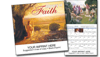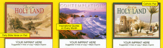 We have pictured below just a few of our religious calendars. Need a sample, idea, pricing or a catalog please give us a call at 800 960-9080 or 206 285-5359 (Seattle) or email us at donace@promotionalproductsandideas.com or don_shepherdson8@msn.com