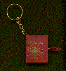 Here is the world's smallest bible !. Attached to a key chain it is great for awards for bible memory work, Daily Vacation Bible School awards and perfect attendance. When closed it measures 1 1/4" X 1 1/2". And yes you can read each page with either real good eyes or a magnifier. Minimum 250 on this great item.