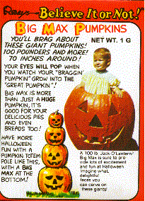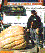 These pumpkin seeds can grow pumpkins of 100 pounds or more with a circumference of over 70 inches around ! The seeds produce more than just another pumpkin. After you have grown your giant pumpkin they are great for delicious pies and breads. Please note that as of March 7th, 1998 we are out of the 1000 free pumpkin seed packets but we will be glad to send your information and pricing on pumpkins and other seeds if you so desire.