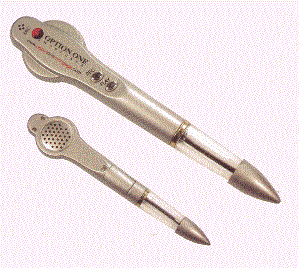 The Voice Pen is 6 inches in length and can be custom imprinted in a 1" wide X 3/8" high area on the pen. The Voice pen can record and play up to a ten second message. Minimum imprintable quantity is 50.