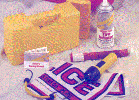 The Compact Highway Emergency Kit contains a tire inflator/sealer, safety flare, powerful flashlight (requires 2 "C" batteries-not included), distress flag, tie-down strap,and a touring manual. The case can also be used to carry water in case the radiaror overheats. Minimum imprintable quantity is 25.