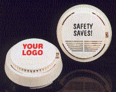 This Smoke Detector can be installed on a ceiling or mounted on a wall. It includes a dual ionization chamber to provide a more accurate raeding. It is a very compact 4" in diameter with a "push to silence" feature for kitchen use. It has an imprintable area of 1 1/2" wide X 1 1/4" high . Minimum imprintable quantity is 25.