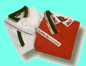 The picture on the left is a triple color block jersey which is 100% combed cotton heavyweight jersey. Fashion and knit collar and welt cuffs. Available in sizes of small thru XXL. The picture on the right is also a triple color block pique made of 100% pique knit with a three button contrasting placket. Available in sizes small thru XXL. Minimum imprintable quantity is only 12 shirts.