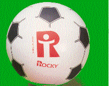 Here is a 16" (32 circumference) inflatable soccerball. Red imprint of your choice on a white panel. Minimum quantity is 150 with an imprint.
