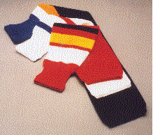 Our Hockey Socks are done in 55% polyester, 45% acrylic and are available in youth sizes of 24" long, home or away, intermediate size of 28" long, home or away and the Adult 32" long, home or away. Minimum quantity is 12 and after the first dozen they are available by the pair.Minimum imprintable quantity is 12 pair per size and the Hockey Socks are available in a variety of colors.