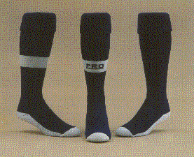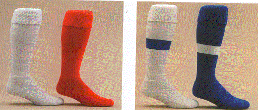 This Pro sock is available in your choice of colors and features The Pro has double welt top with elastic to hold sock in place. Leg is 100% stretch nylon. It has an optional area for knit-in logo or team nams. It has a 3X1 ribbed ankle support. The full terry, 2-tone foot is 80% acrylic and 20% nylon. The heel and toe have a cushioned footwith white sole for the player's comfort. Also the socks have an elastic arch support for a better fit.