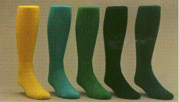 Picture below are the various choices of sock colors. Pictured below are sock colors of Yellow, Teal, Kelly Green, Black and Dark Green.