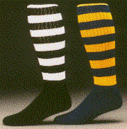 The Bumble striped soccer socks are available in contrasting color stripes and can be custom embroiderd with your logo or team name. Available in three basic sizes of 5-9, 7-11 and 10-13. Minimum imprintable quantity is 36 pair and colors available are black, grey, navy, royal, columbia blue, kelly green, orange, scarlet, gold, maroon, purple, white, dark green, teal, brown, cardinal and pink.Minimum imprintable quantity is 12 pair per size.