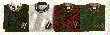 Here are four 9 oz. Super Sweats Heavyweight Tri-Color Set-In Sleeve Crew Neck Sweatshirts. These are 50/50 multi-napped NuBlend resistant fabric, engineered striped ribbed collar and cuffs, solid Lycra ribbed waistband, cover seamed neck, shoulders, armholes and waistband.