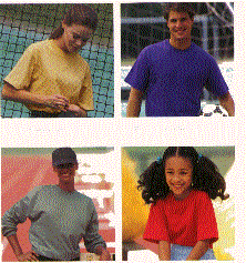 Hanes Her Way Tee Shirts are specifiically designed to fit a women's shape. The tightly knit open-end fabric provides a great print for both silkscreening and embroidery. The ladies line is available in a large assortment of colors. Pictured at the top is the short sleeve, on the right top is the wae around, bottom left features the tank top,