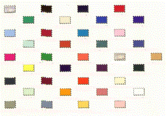 Second row left to right - Jade, Natural, Royal Blue and Purple