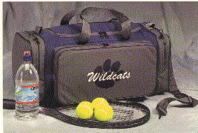 Here is a tennis bag that measures 9" X 9" X 22" with an imprint area of 6 1/2" X 6". Available in Black, Navy, Black/Forest with Black/Forest trim and Navy/Charcoal with Navy/Charcoal trim. It has a large main compartment with U-shaped entry, a gussetted full-width front and two end pockets and a detachable shoulder strap with a rubber shoulder pad. The fabric is 600 denier polyester. Minimum imprintable quantity is only 25.We have tennis bags that can hold up to 9 racquets. Please call 800 960-9080 to discuss the type of bag and quantity of racquets that your bag needs to hold.