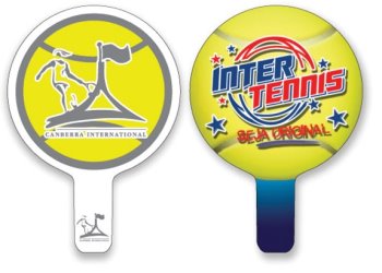 Great product for schools, tennis organizations and tennis booster groups. Sponsors can display their message on the front of the fan and a schedule on the back, The fan is 8" in diameter and is weather resistant to rainy days. Less than $ 1.25 each in the minimum imprintable quantity of 100.