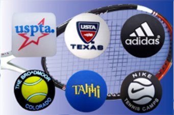 The Tennis Racquet String Dampener measures 1" X 1" and stops the vibration in the racquet. It can be custom imprinted for your club, tournament, school, tennis academy, corporate events, tennis business or organization. Less than $ 3.75 each in the minimum of 250.